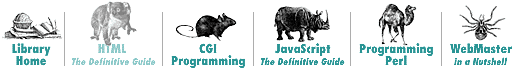 Web Reference Library CGI Programming on the World Wide Web JavaScript: The Definitive Guide Programming Perl WebMaster in a Nutshell